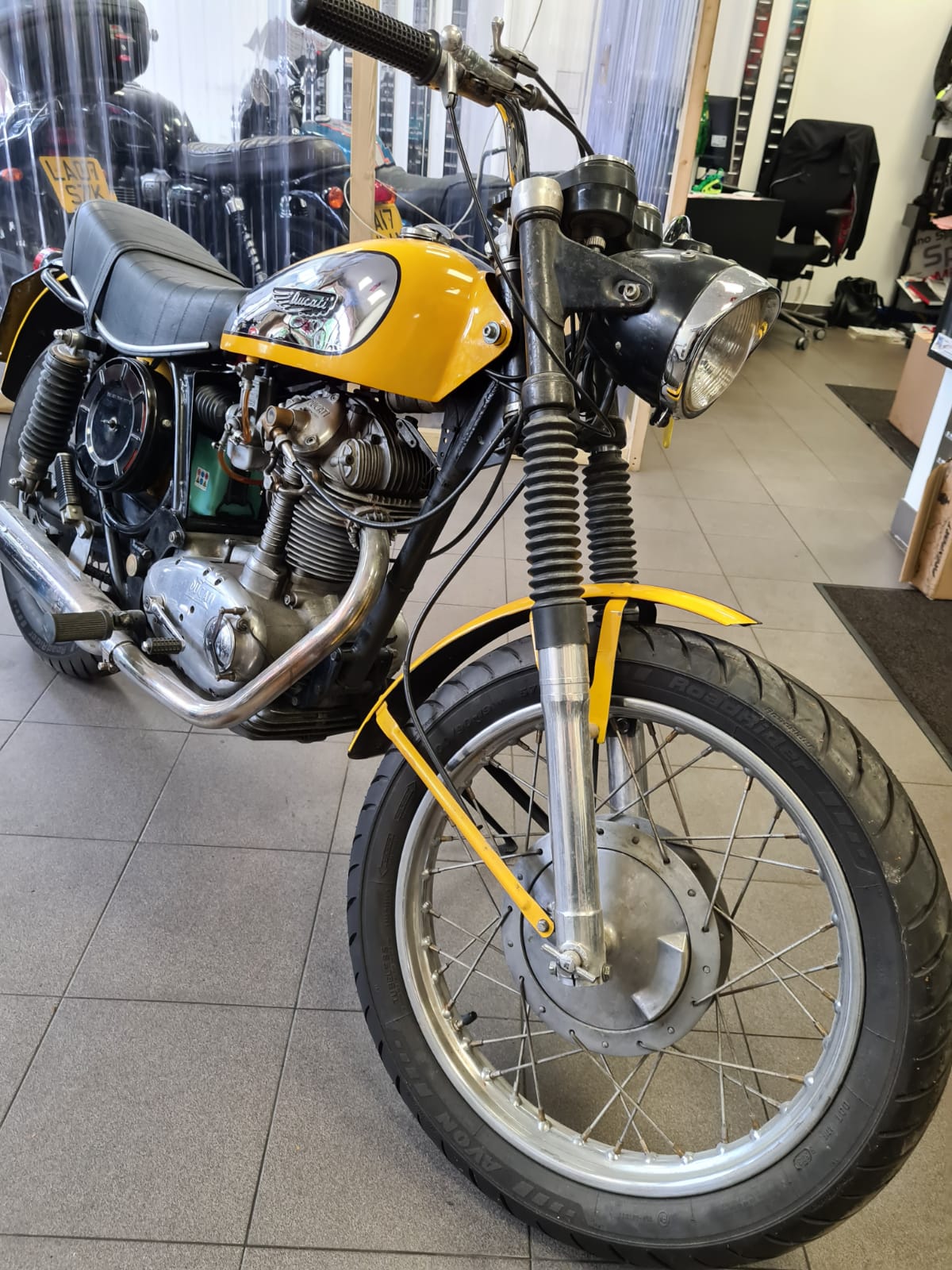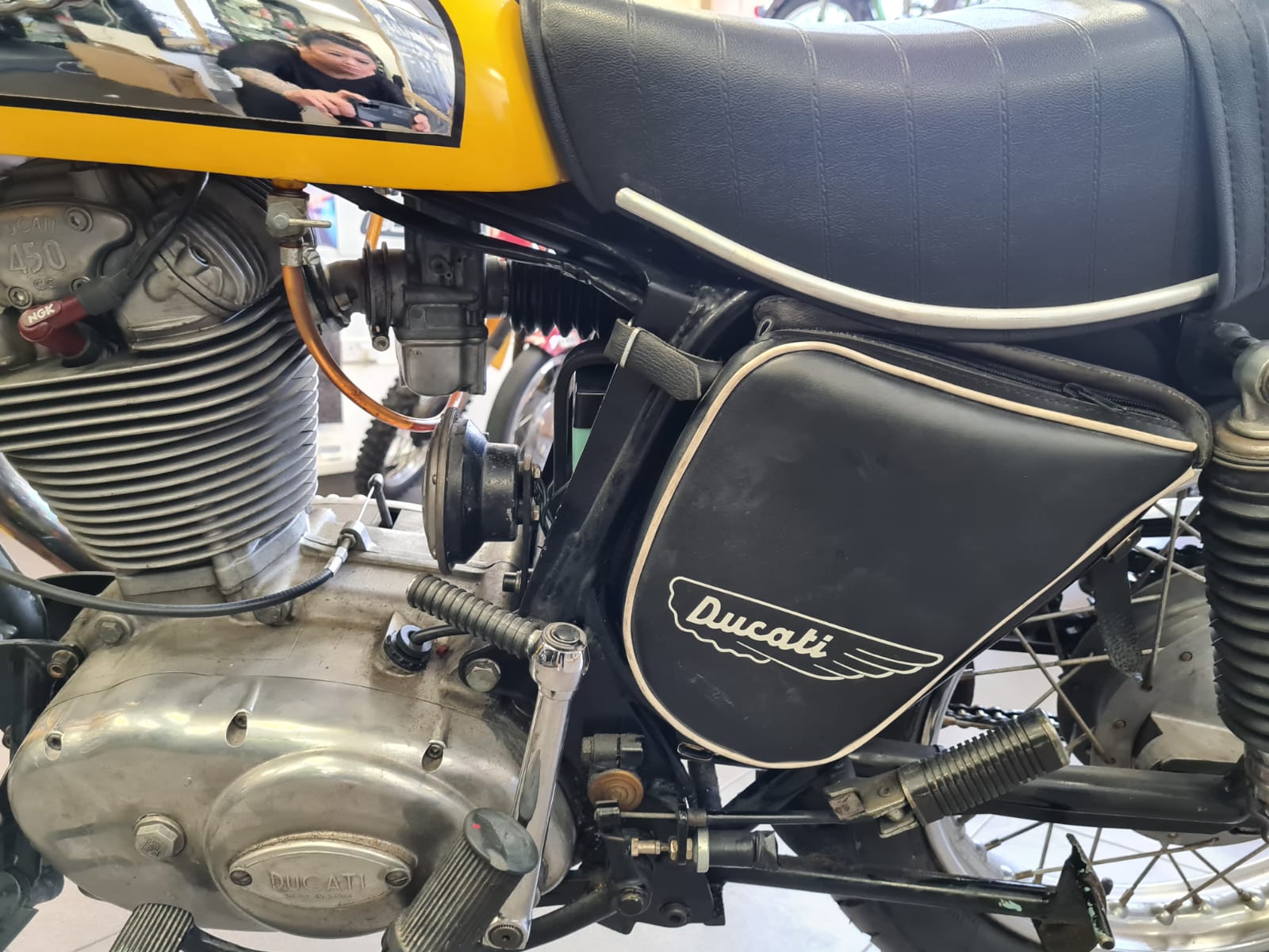 The Scrambler was mainly designed for the American market. It underwent a number of changes until 1968 with the launch of true Scramblers mounting a “wide casing” engines, first in the 250 and 350 version and then, in 1969, in the 450 version. The Scrambler series includes some models featuring Desmodromic cylinder heads and underwent a number of technical touch-ups up until 1974, when its production was discontinued.